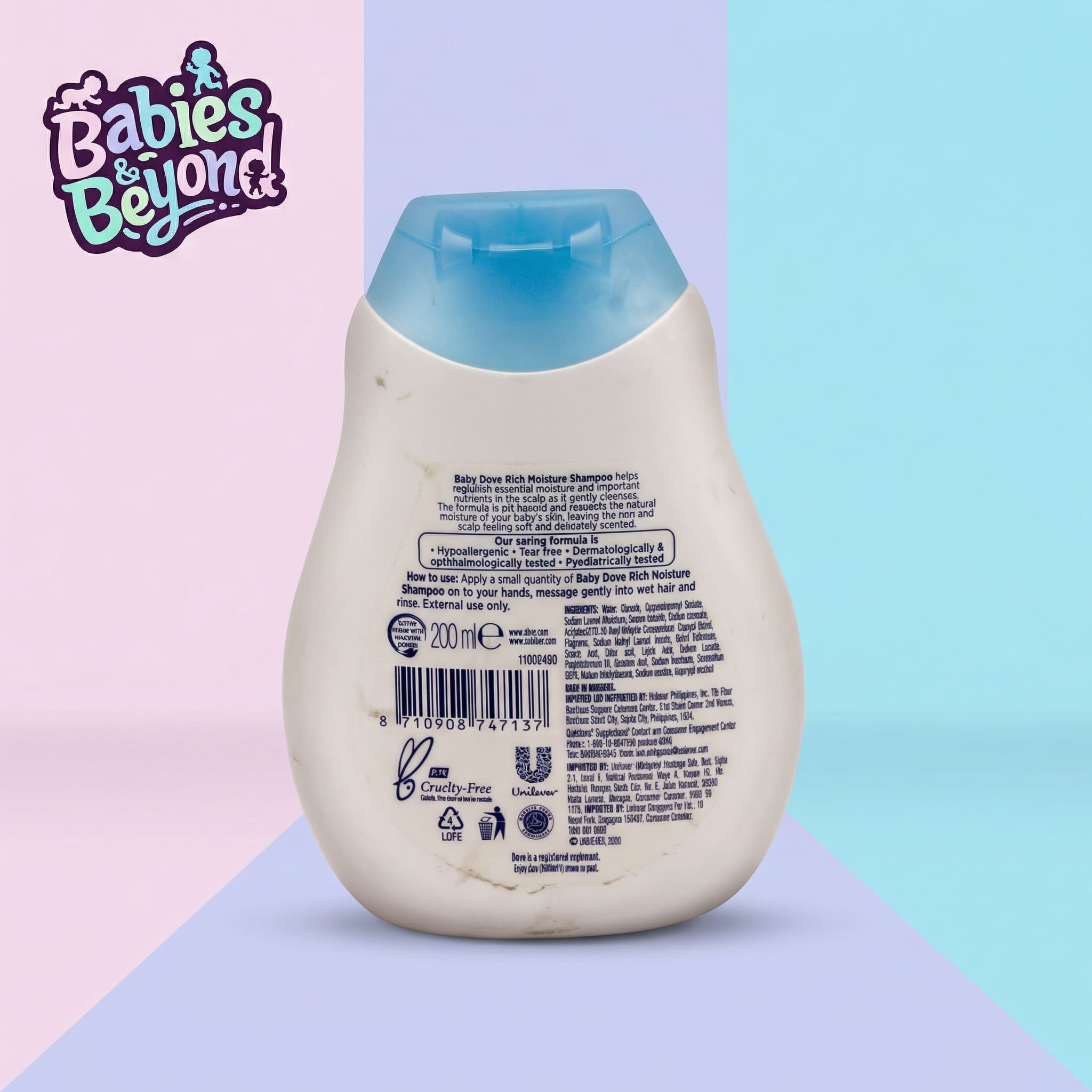 At Babies & Beyond, we choose products that care for your little one as gently as you do. Dove Baby Shampoo Rich Moisture is specially formulated to cleanse delicate baby hair and scalp without stripping away natural moisture.