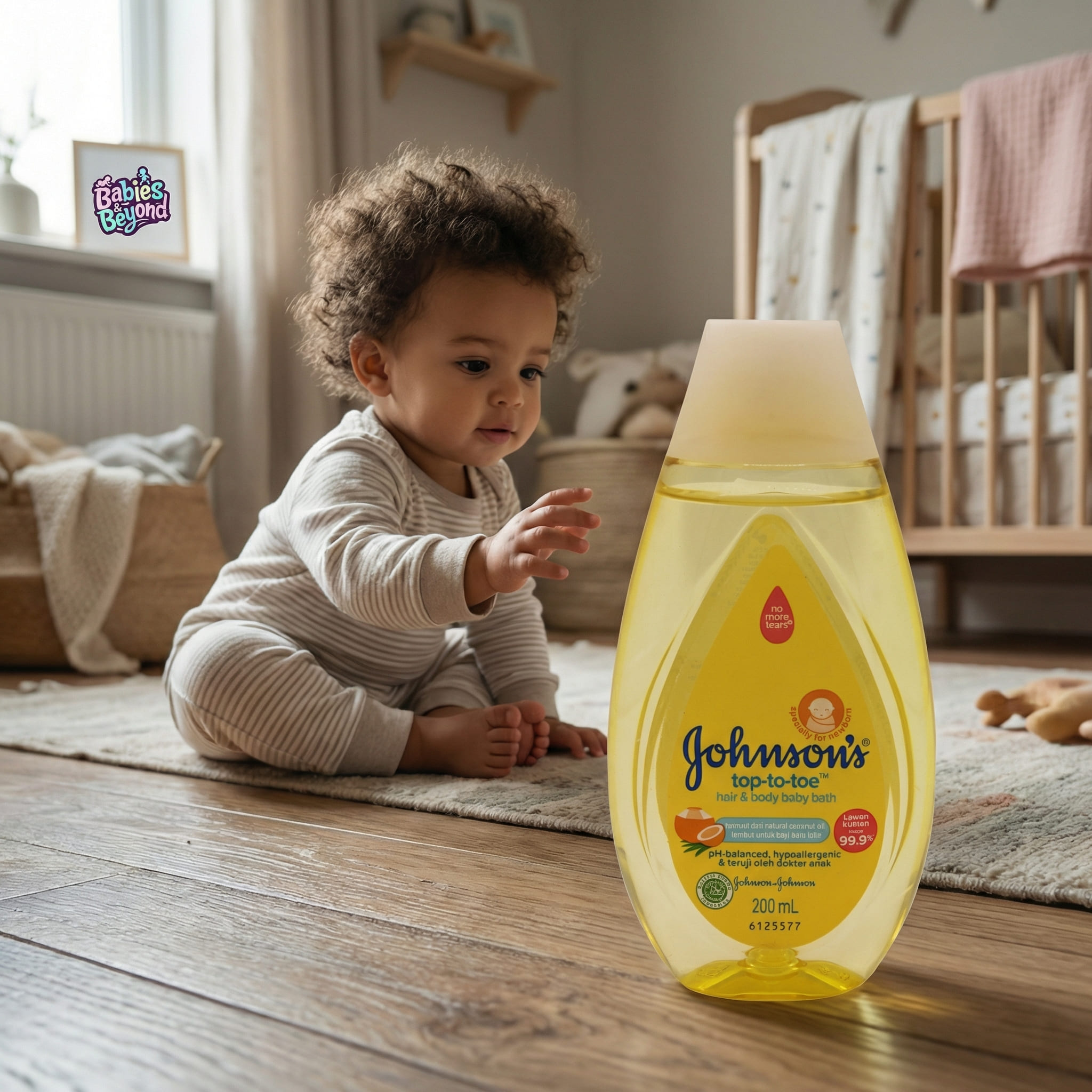 Johnson’s Top-to-Toe Baby Bath gently cleanses baby’s delicate hair and skin in one simple step. Its mild, tear-free formula is suitable for newborns and ideal for everyday bathing.