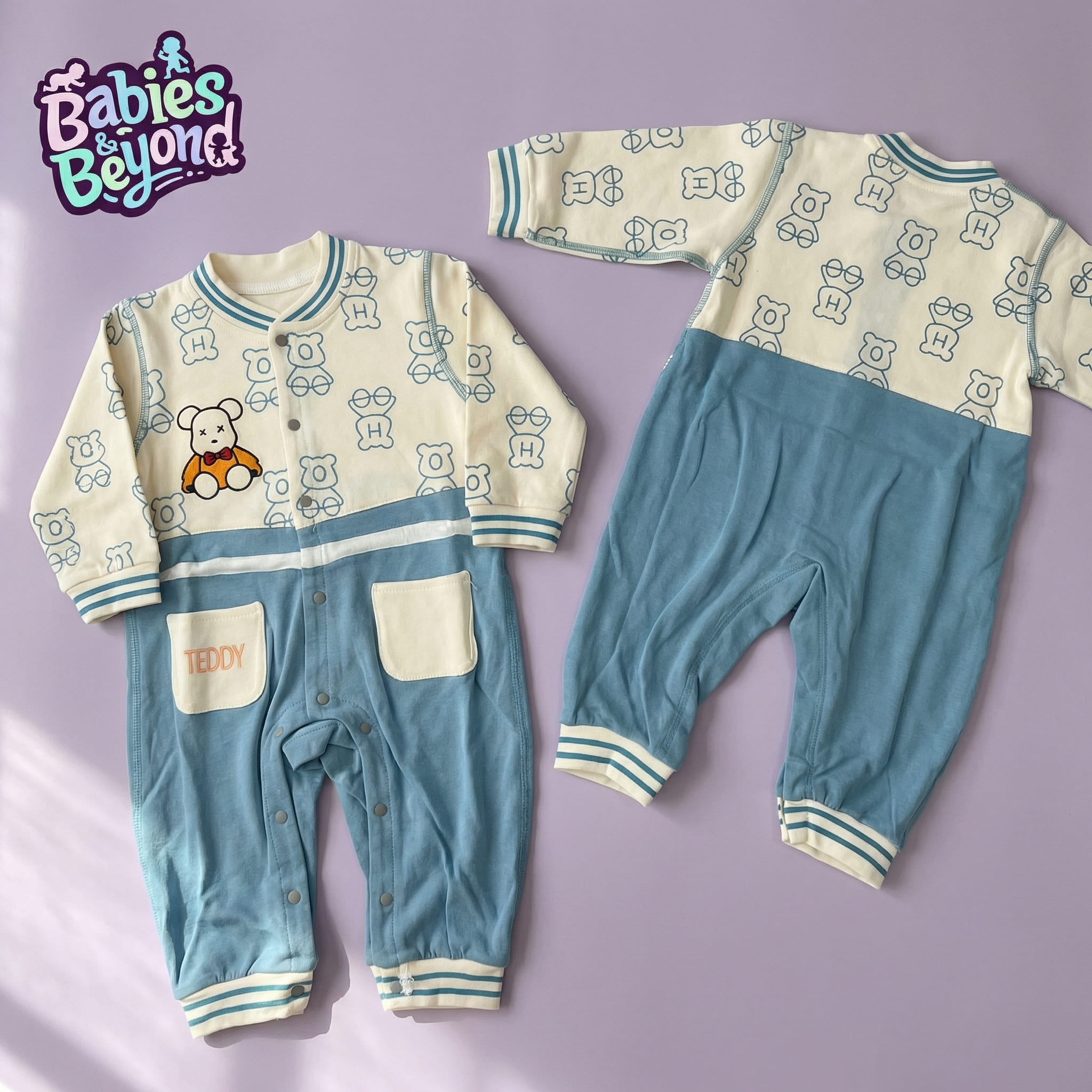 3D Teddy Patch: A cute blue bear patch with a red bow tie on the chest adds a premium boutique touch.
