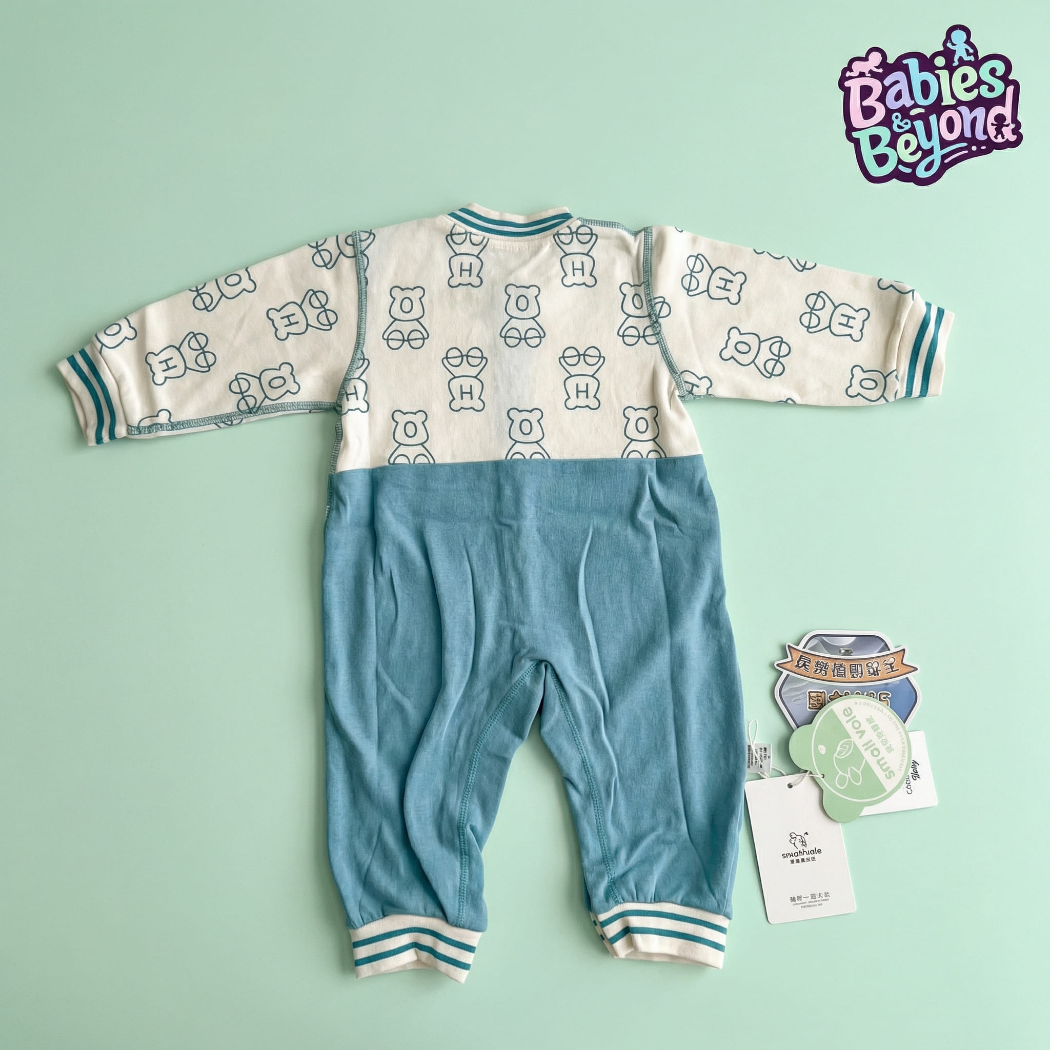 Keep your little explorer cool and fresh with this sporty “Teddy” summer romper. Available in Cream & Steel Blue, this 95% cotton jumpsuit features 5A antibacterial protection and a fun bear-patterned top for premium summer comfort.